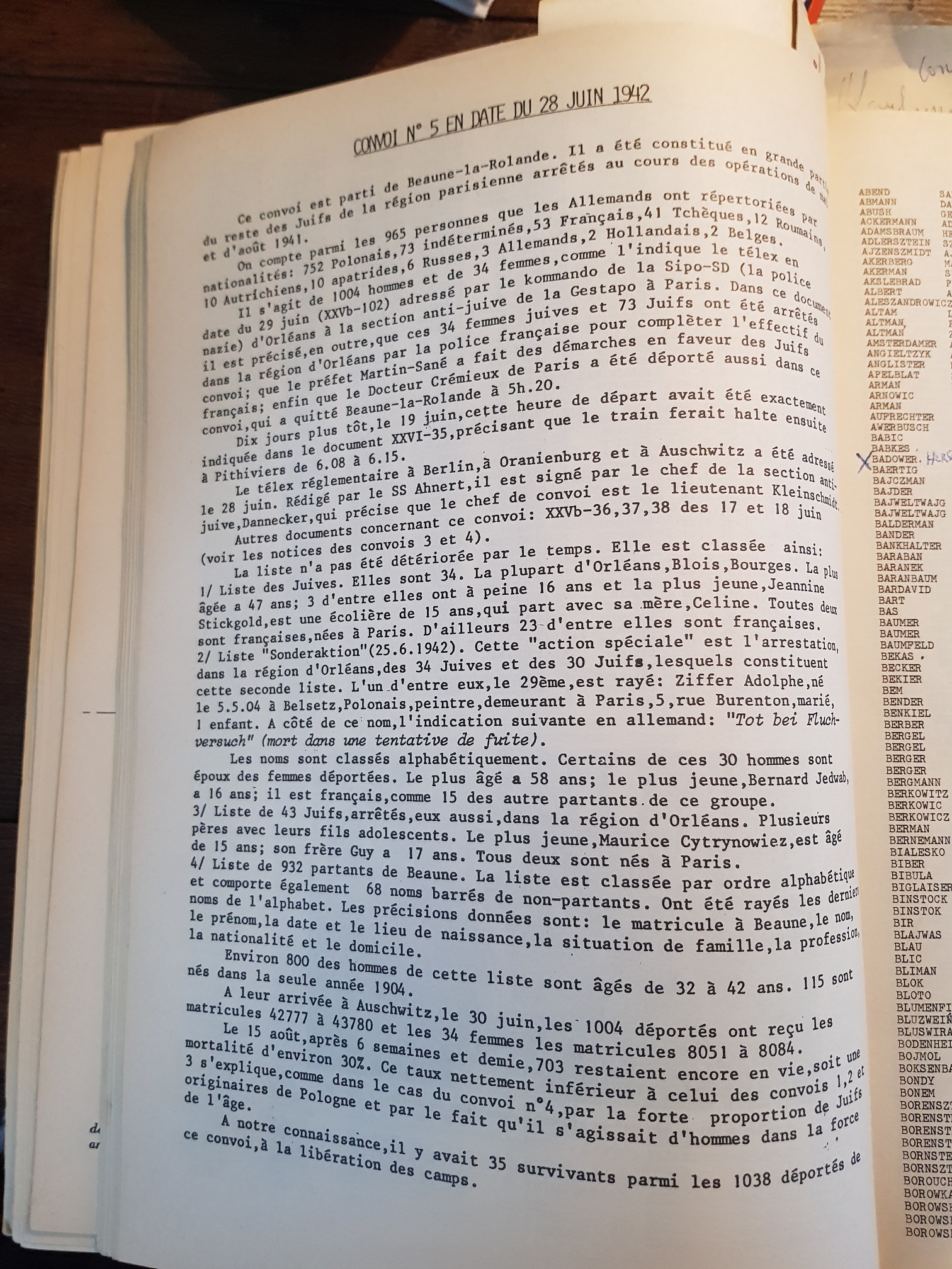 Gérard Badower écrit ce que fut le témoignage oral de son père ainsi que les conversations avec des camarades rescapés : Charles Palant, Robert Waitz qui eurent eux aussi la chance d'échapper aux sélections alors que d'autres, tel Yutek, étaient victimes de pseudo-expériences "médicales". II reprend les récits de Robert Chazine (Juif résistant) et Roger Collignon (otage communiste déporté par le convoi politique du 6 juillet 1942).