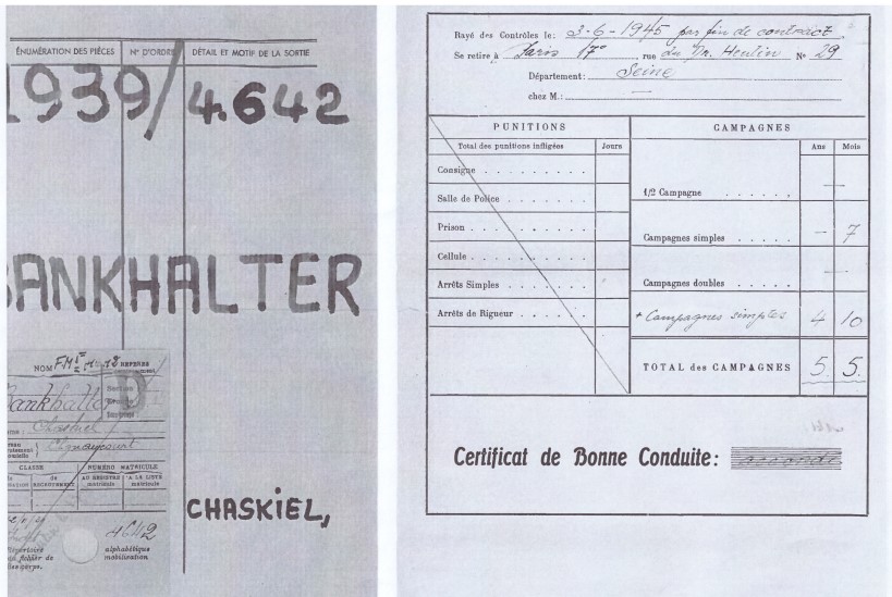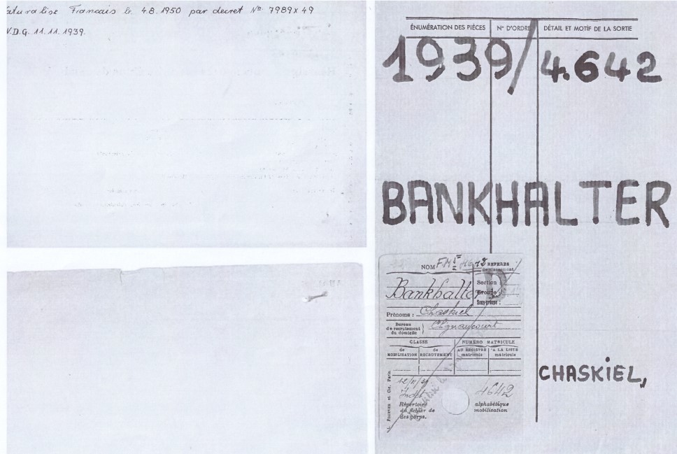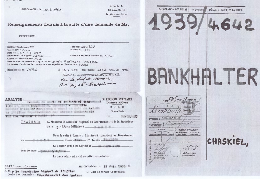 Abram BANKHALTER est né le 1er mai 1902 à Biala Podlaska (Pologne). Il a été déporté du camp de Beaune-la-Rolande à destination du camp d'Auschwitz le 28 juin 1942 par le convoi 5. Il était le frère de Chaskiel Bankhalter engagé volontaire.