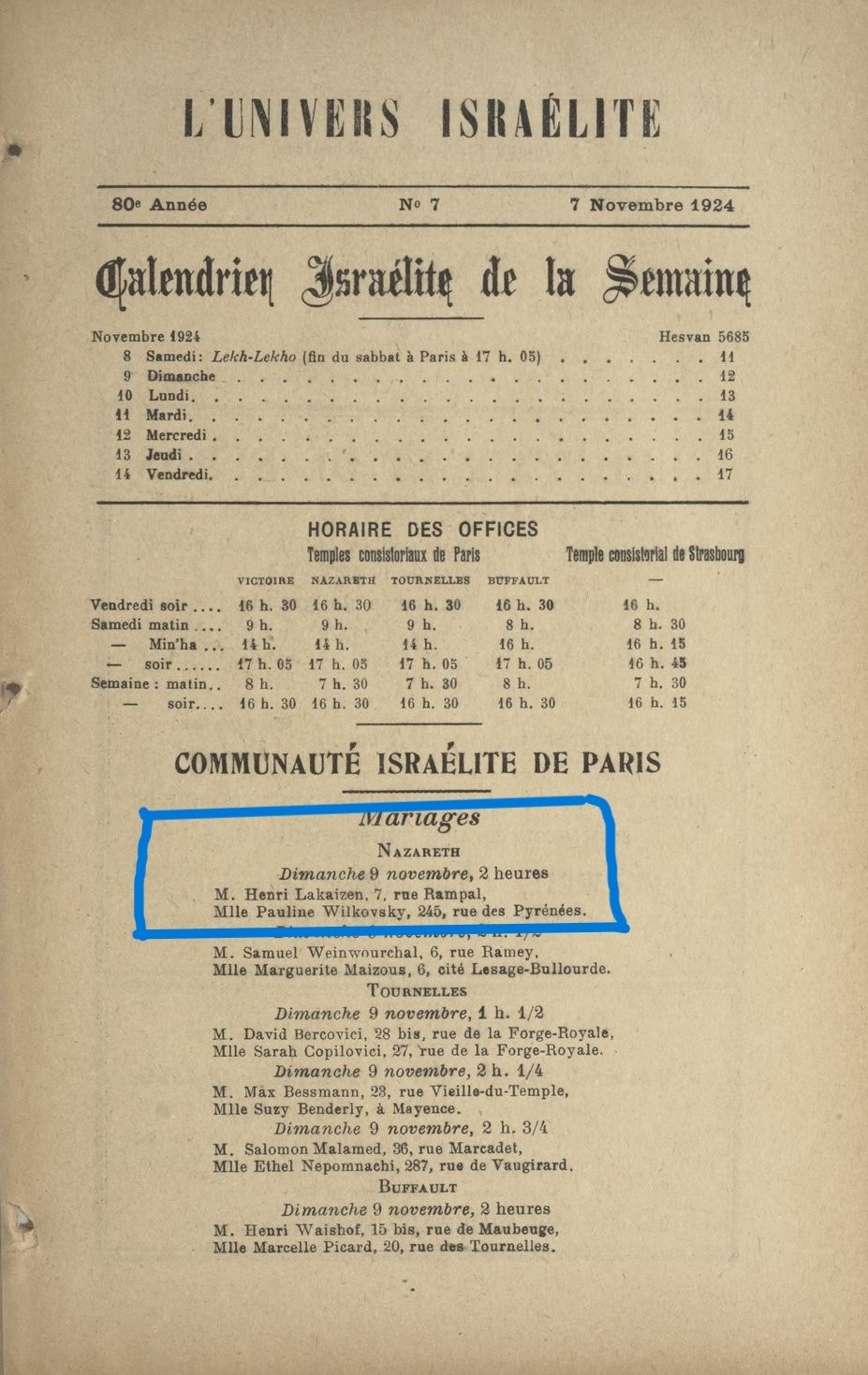 Hirsch /Henri LAKAJZEN est né le 1er février 1902 à Varsovie. Il était maroquinier et demeurait 90 bd de Ménilmontant Paris 20ème. Il s'est engagé volontaire au début de la guerre. Convoqué par le Billet Vert, il a été arrêté le 14 mai 1941 et interné à Pithiviers. Il était marié à Pauline WILKOWSKI qui a été déportée depuis Drancy par le convoi 7 du 19 juillet 1942 . Leurs 2 enfants Louis né en 1925 et André né en 1936 ont échappé à la déportation.
